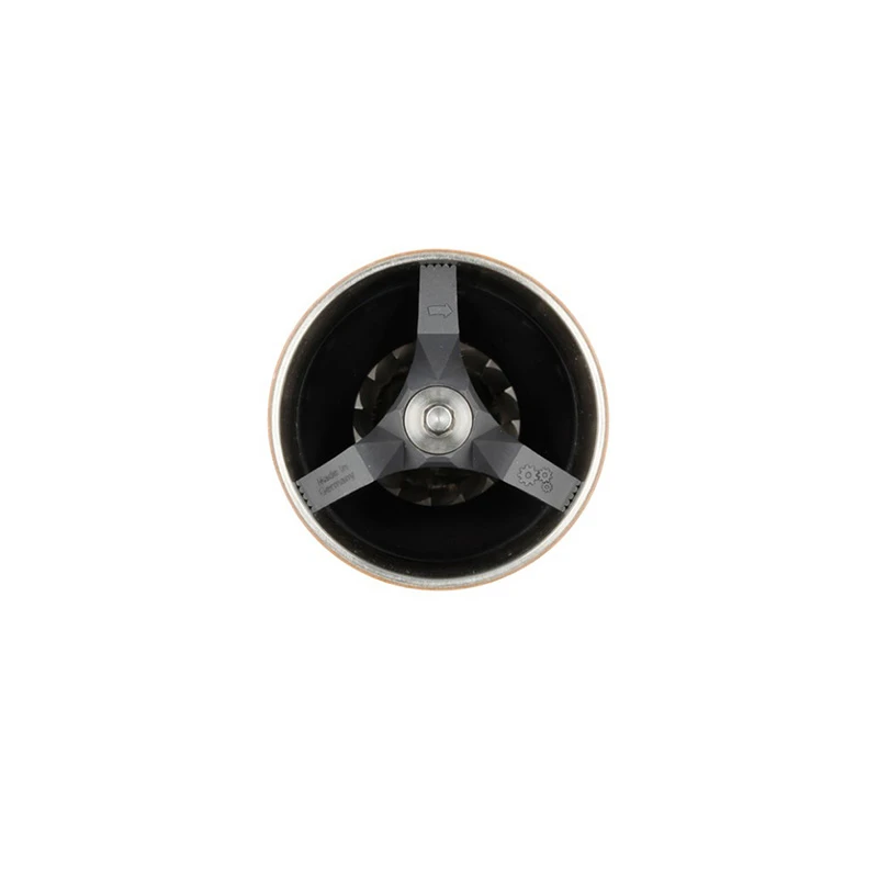 Optisch ist die Mühle schlicht, hochwertig und elegant. Der Kurbelknauf der C40 MK4 Nitro Blade American Cherry ist aus Eichenholz und durch den Druckverschluss abnehmbar. Die C40 MK4 Nitro Blade American Cherry von Comandante ist ideal auch für unterwegs, da sie leicht und unzerbrechlich ist. Ein weiteres Upgrade der Mühle: Durch die sogenannte eingebaute „Pflug Aktion“kommt es zu keiner Bohnenfalle rund um die Achse und es kommt nicht mehr zu eingeklemmten Bohnen beim Mahlen.