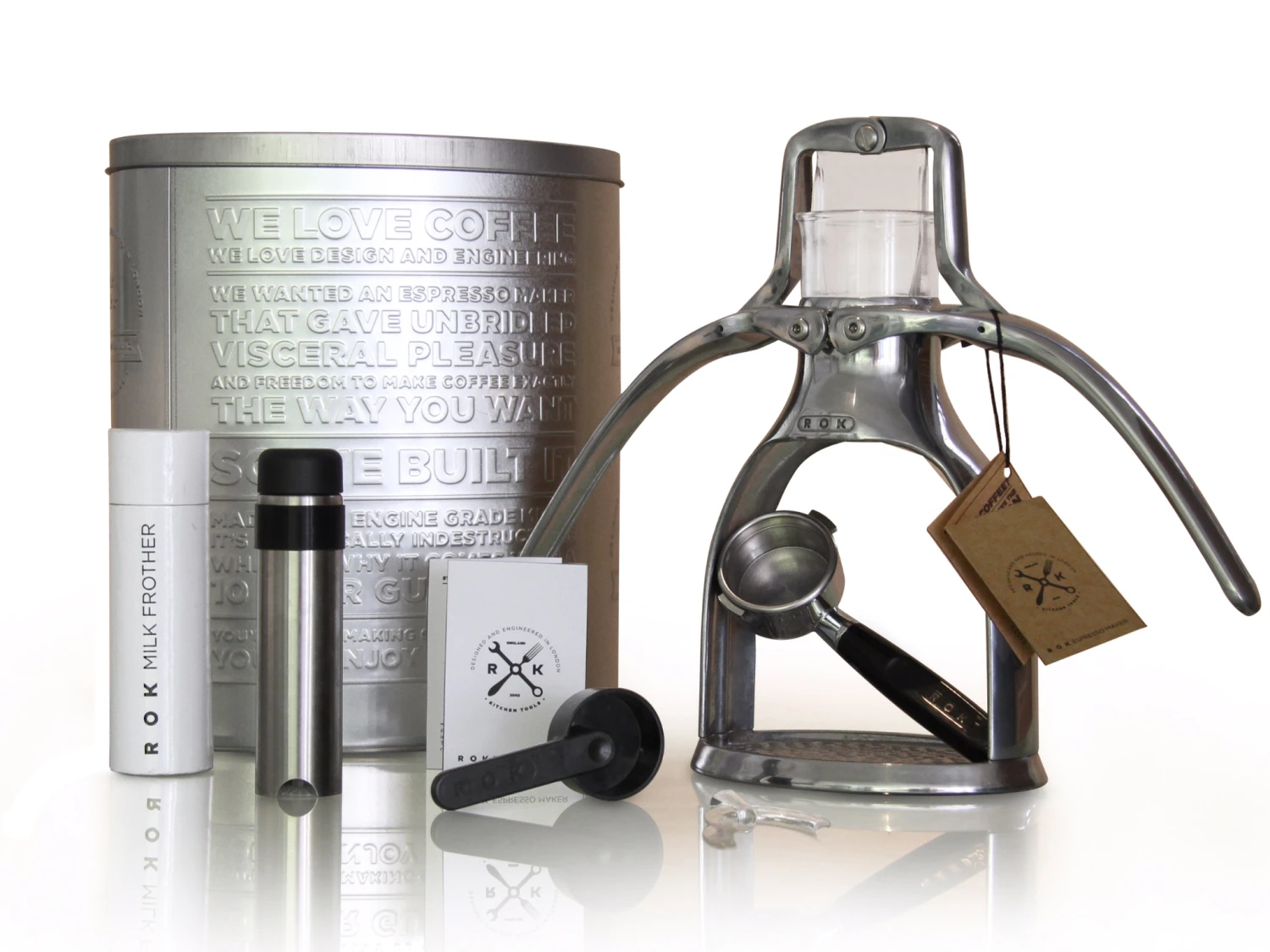 Mit der ROK-Espressomaschine bringen Sie den perfekten Espresso einfach, schnell und handgepresst in Ihre Tasse.