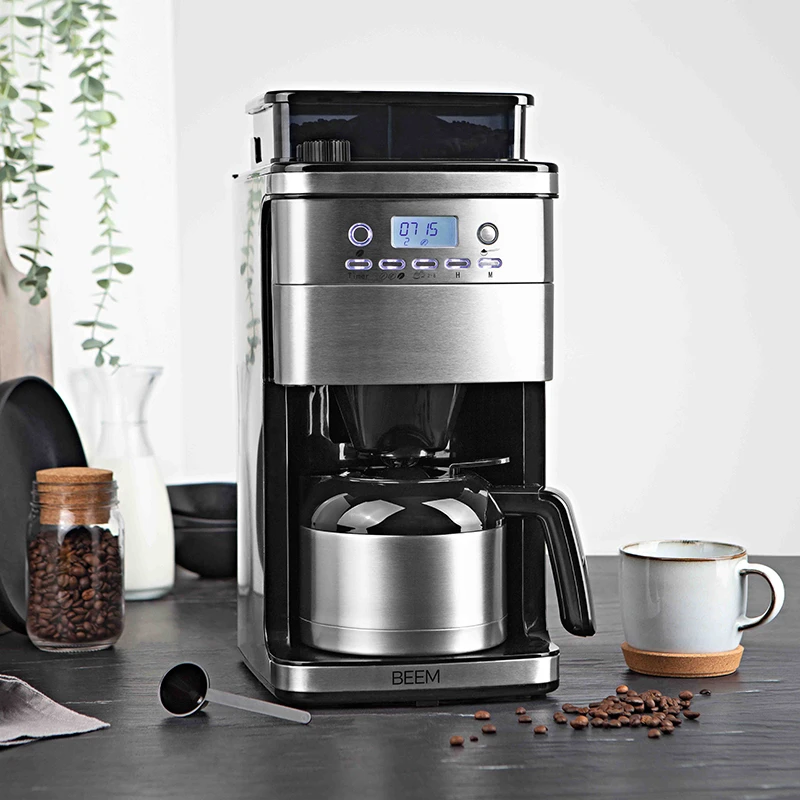 Die bereits angesprochene Frische wird bei dieser Filterkaffeemaschine durch das integrierte Kegelmahlwerk garantiert! Die Kaffeebohnen werden direkt frisch gemahlen und dann zu einem leckeren Filterkaffee gebrüht. Um auf jeden individuell bevorzugten Geschmack eine Antwort zu haben, hat BEEM insgesamt 28 verschiedene Mahlwerkeinstellungen zur Verfügung gestellt, die je nach Belieben gewählt werden können. Statt einem zusätzlich zu benutzenden Papierfilter verfügt die Filterkaffeemaschine über einen automatischen, permanent Goldfilter. Dies ist zum einen praktisch, zudem aber auch umweltfreundlich.