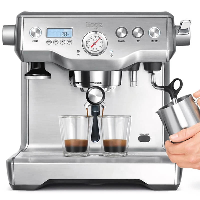 The Dual Boiler von Sage basiert auf einem Dual-Boiler Heizsystem, verfügt über einen 2,5 l Wassertank und ist aus hochwertigem Edelstahl hergestellt. Durch das Dual-Boiler Heizsystem wird der zeitgleiche Bezug von sowohl Espresso, als auch Dampf für Milchschaum ermöglicht. Dank der integrierten PID-Steuerung lässt sich die Temperatur des Brühwassers auf bis zu +/- 1°C genau regulieren.